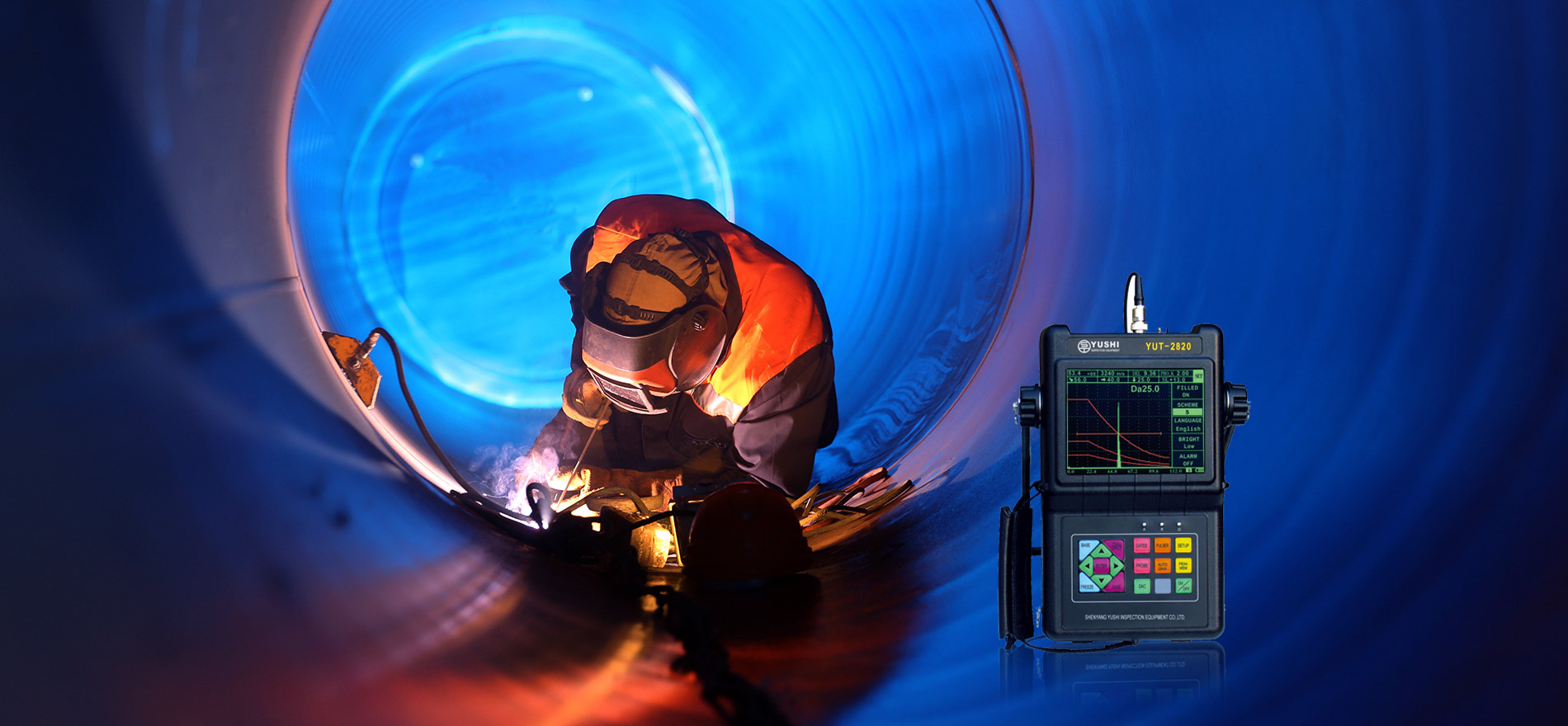 超聲波探傷儀在工程中的應(yīng)用,YUT系列探傷儀具有可變方波技術(shù),全密封設(shè)計,全屏顯示功能,DAC、AVG曲線,大容量鋰電池,中英文界面。